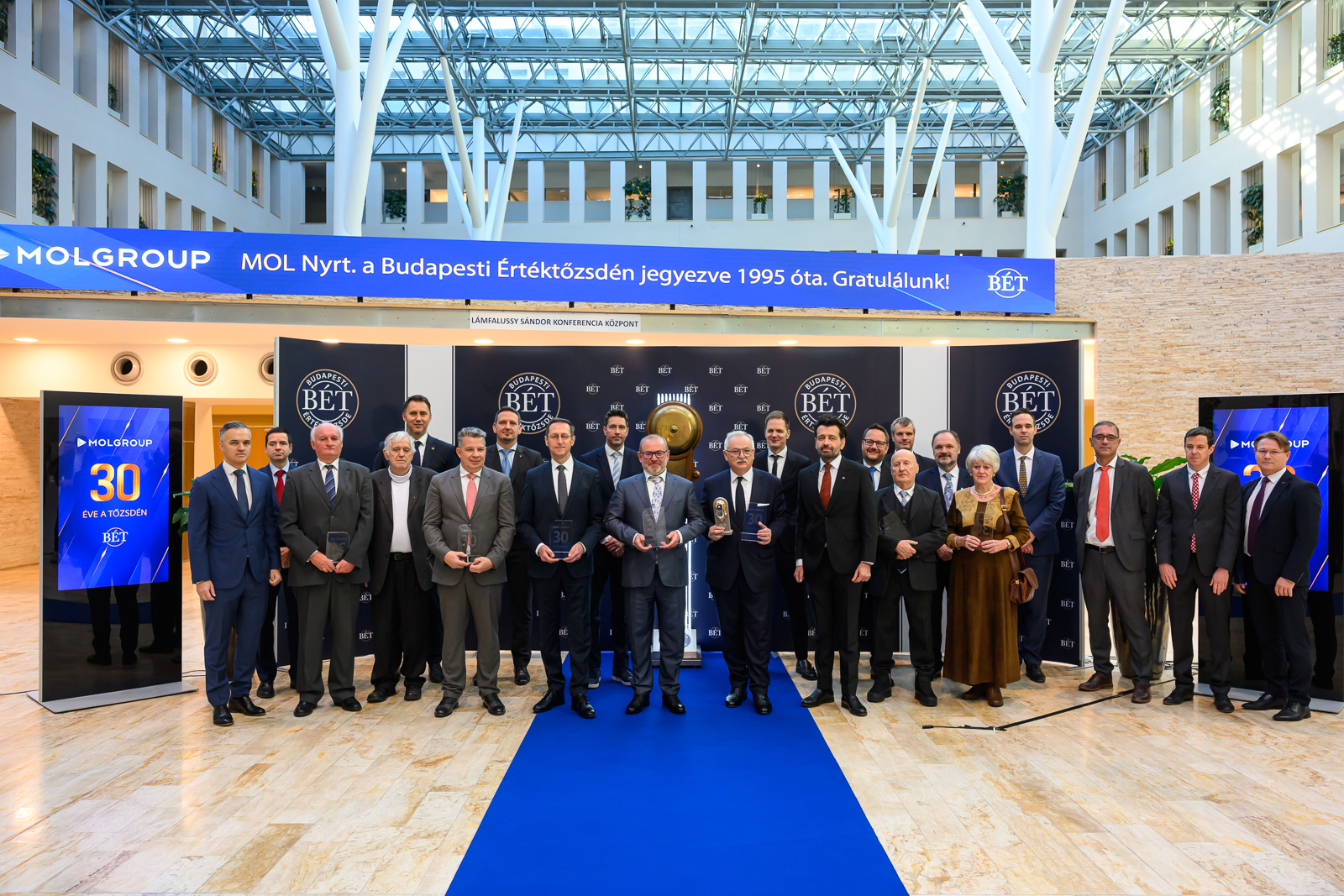 Tóth Tibor, a Budapesti Értéktőzsde vezérigazgatója a jubileum kapcsán kiemelte:„A MOL az eltelt három évtizedben folyamatosan aktív szereplője volt a hazai befektetői környezetnek. A társaság nemzetközi méretűvé válása és hosszú távú stratégiája élesen szemlélteti, milyen szerepet tölthet be egy vállalat a tőkepiacon, ha folyamatosan alkalmazkodik a globális környezethez és elkötelezett a transzparens működés iránt.”