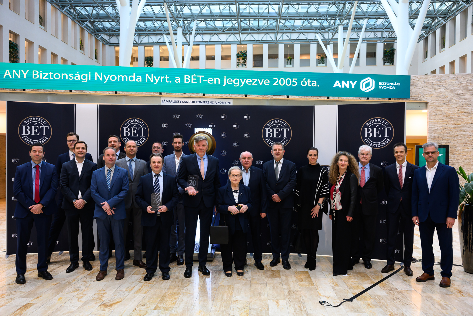Az ünnepségen beszédet mondott Zsámboki Gábor, az ANY Biztonsági Nyomda Nyrt. vezérigazgatója: „Az elmúlt húsz év egyértelműen igazolta, hogy kiváló döntést hoztunk, amikor két évtizede a tőzsdére léptünk. Büszkén mondhatom el, hogy 2005 óta árbevételünk több mint hatszorosára, exportunk pedig csaknem hetvenszeresére nőtt. Ez a mérföldkő új korszakot nyitott vállalatunk történetében: stabil alapot teremtett a folyamatos fejlődéshez, erősítette a befektetői bizalmat, és hozzájárult ahhoz, hogy az ANY Csoport mára a biztonsági nyomdaipar egyik meghatározó szereplőjévé váljon a nemzetközi piacon. Folyamatosan a legmagasabb szintű, innovatív biztonsági megoldások fejlesztésére törekszünk, és ezt az irányt a jövőben is változatlan elkötelezettséggel kívánjuk folytatni.”